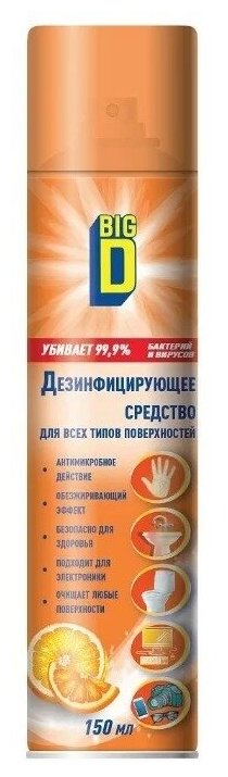 BIG D Средство дезинфицирующее для всех типов поверхностей 150мл (аэрозоль)