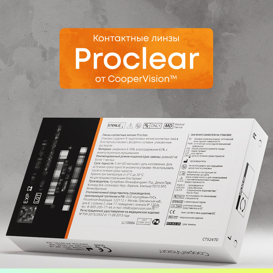 Ежемесячные контактные линзы CooperVision Proclear 6 pk (BC 8.6; D -15.50)