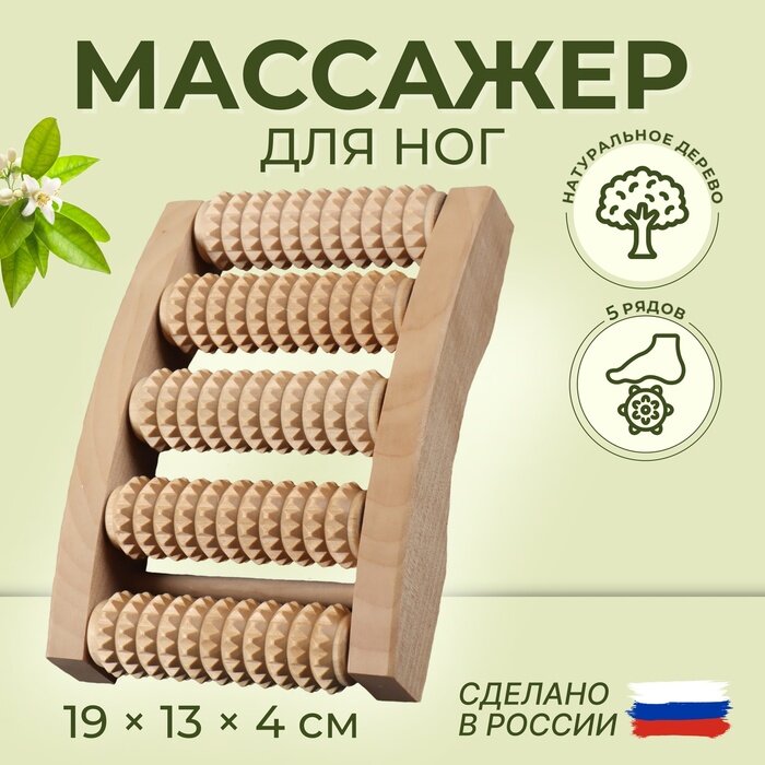 Массажёр для ног «Барабаны», 19 ? 13 ? 4 см, деревянный, 5 рядов, малый