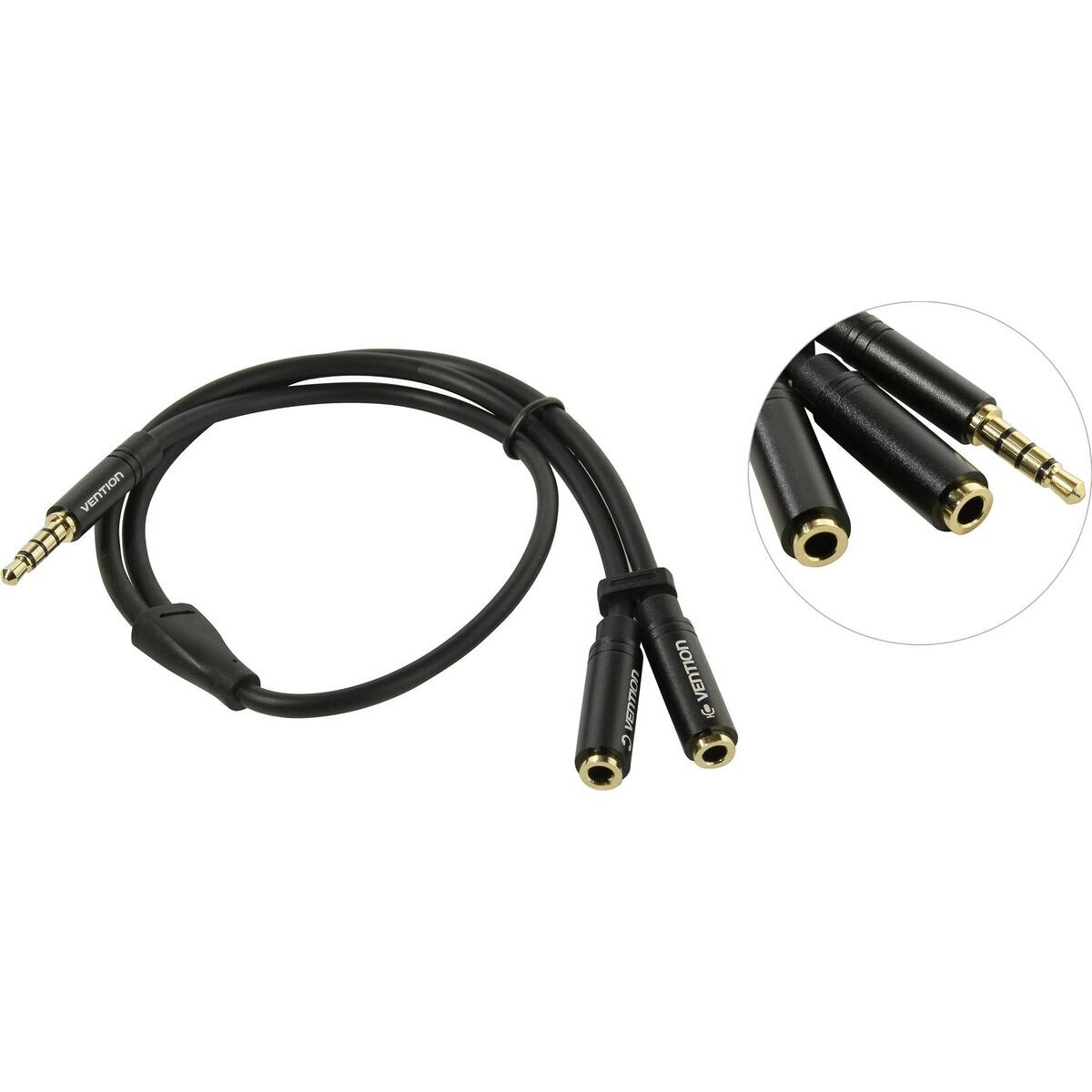 Переходник для наушников VENTION Jack 3.5 (m) - 2xJack 3.5 (f) , 0.3м, GOLD, черный [bbcby]