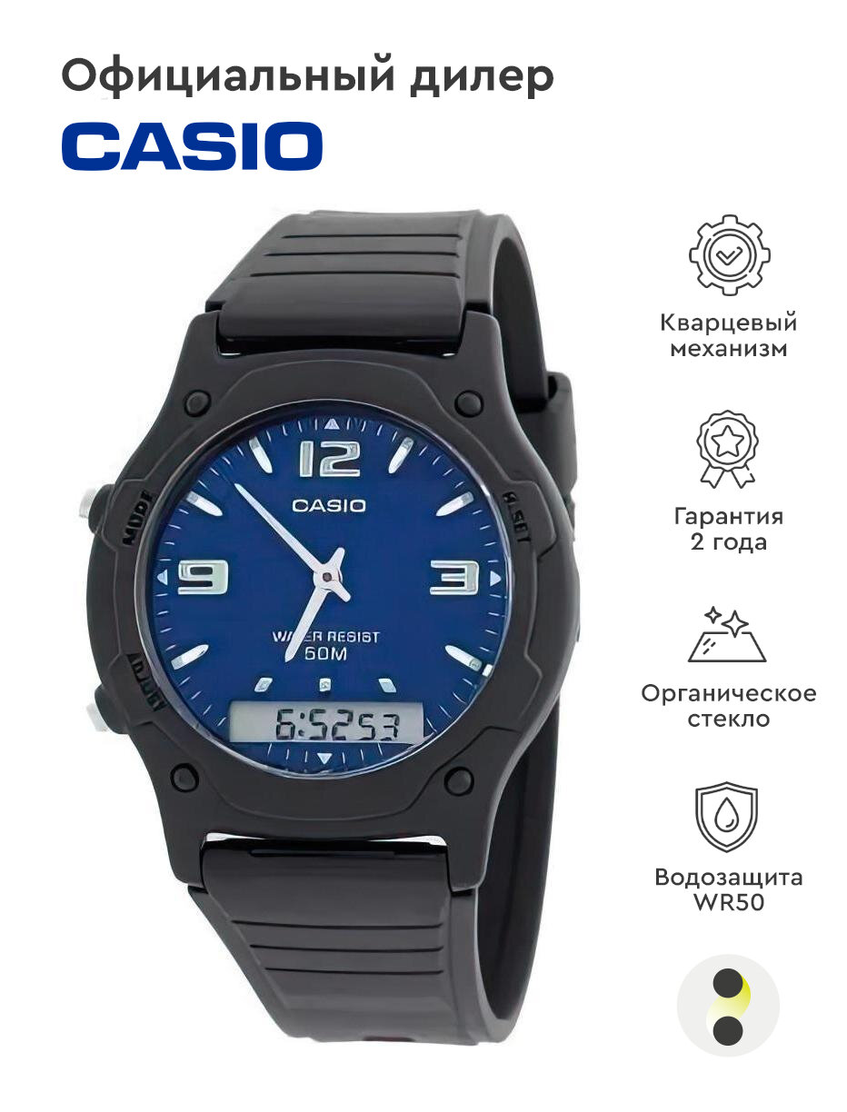 Наручные часы CASIO AW-49HE-2A, синий, черный