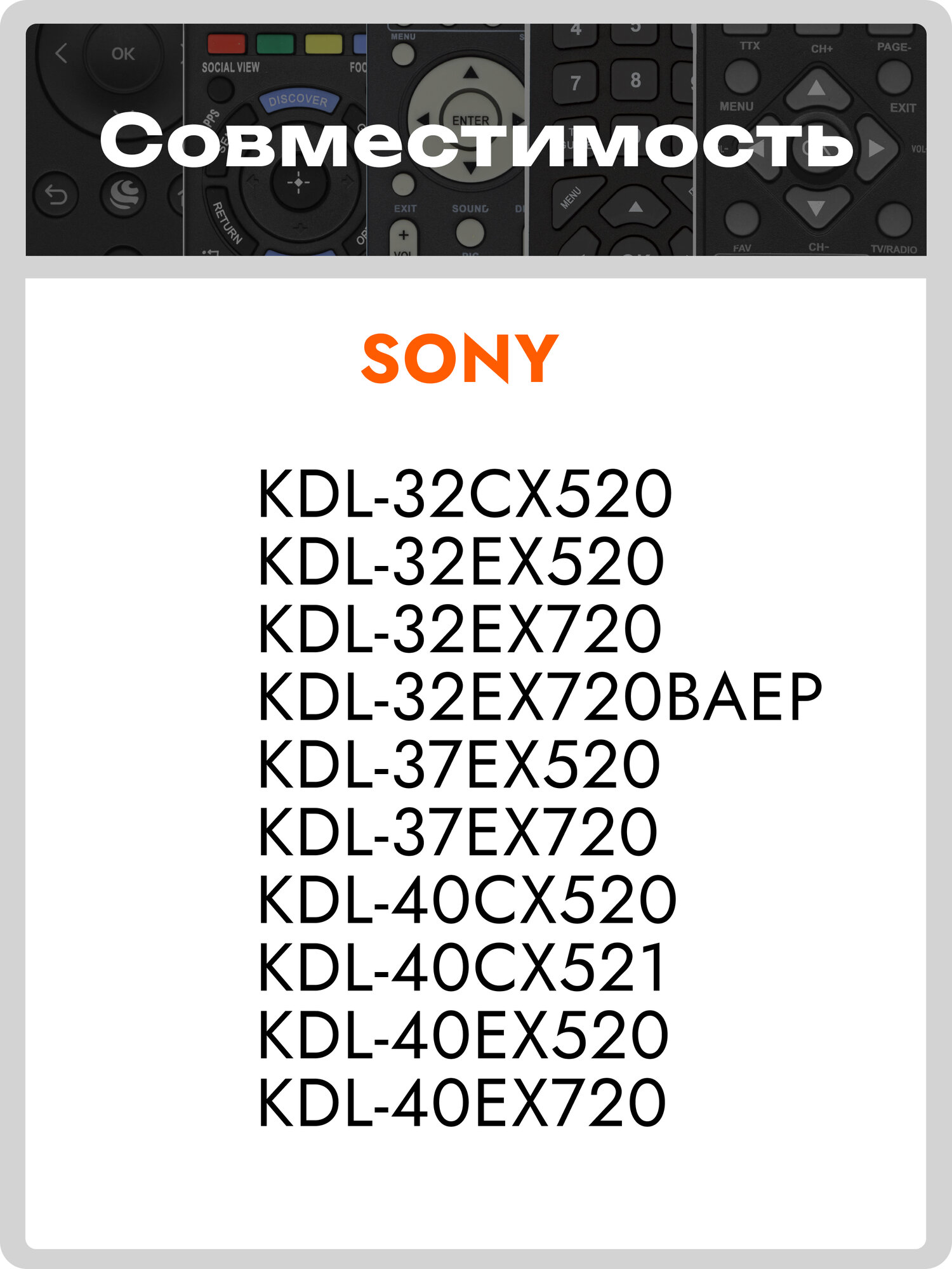 Пульт ДУ Huayu RM-ED044 для телевизоров Sony KDL-32EX520/KDL-32EX720, черный