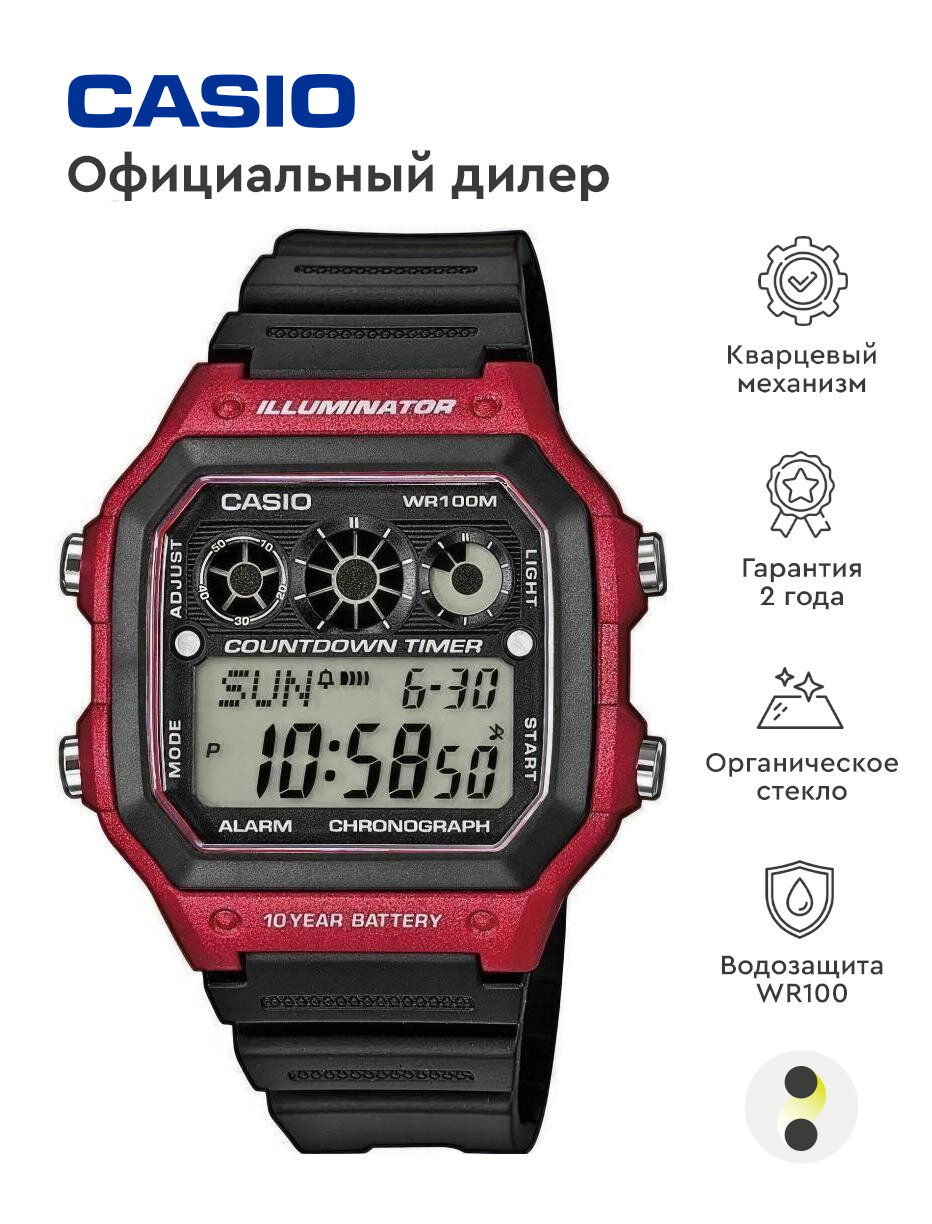 Наручные часы CASIO Collection AE-1300WH-4A, серый, красный