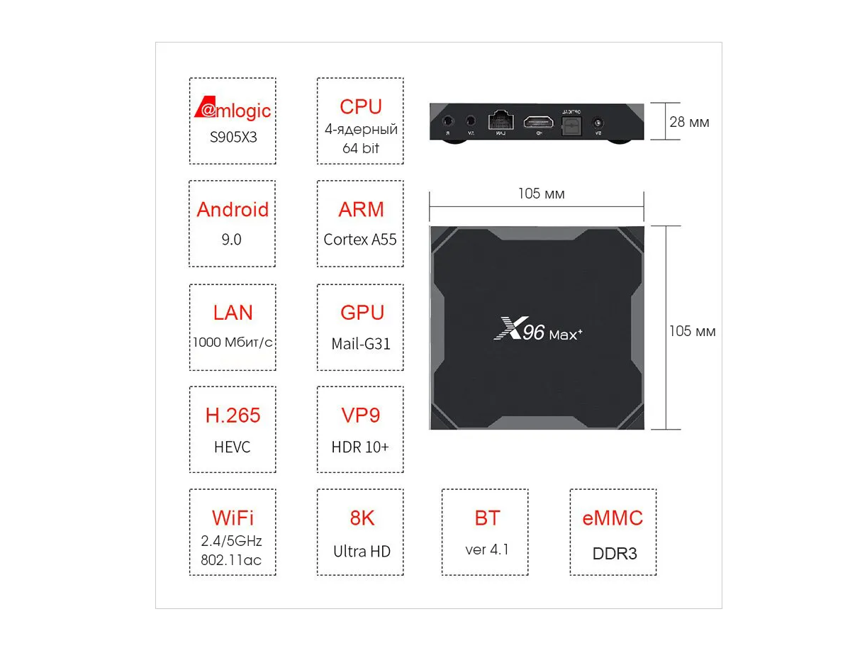 SMART TV приставка Vontar X96 max Plus Amlogic S905X3 4+32 GB, Android 9 интересное: