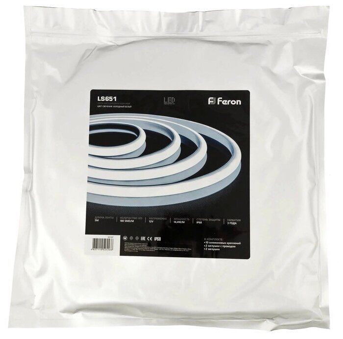 Ниже Вы можете прочитать отзывы на Feron LS651 Cветодиодная неоновая LED лента , 180SMD(2835)/м 14.4Вт/м 5м IP68 12V 6500К 32107, ознакомится с подробными характеристиками, посмотреть интересные обзоры и фотографии на Feron LS651 Cветодиодная неоновая LED лента , 180SMD(2835)/м 14.4Вт/м 5м IP68 12V 6500К 32107.