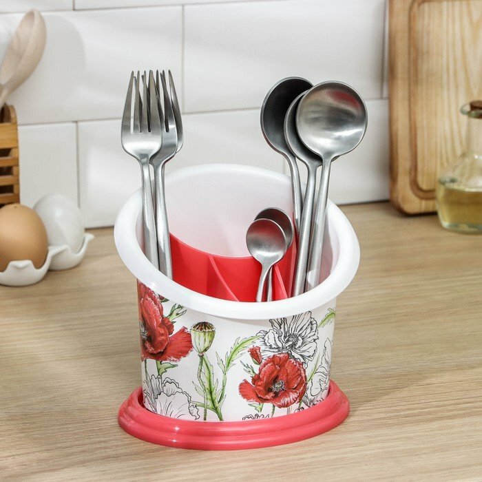 Подставка для столовых приборов Альтернатива, 16 x 13 x 16 см, маки
