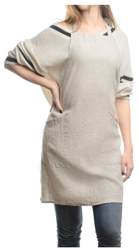 Фартук из умягченного льна бежевого цвета, 70х82 см