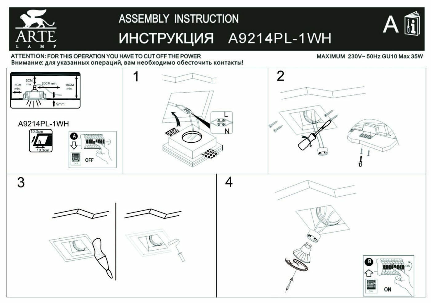 | Комплектация | Встраиваемые светильники Arte Lamp A9214PL-1WH |