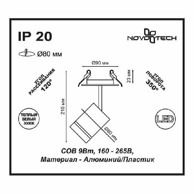 Встраиваемый светодиодный светильник NOVOTECH ARUM 357687 LED 9W белый