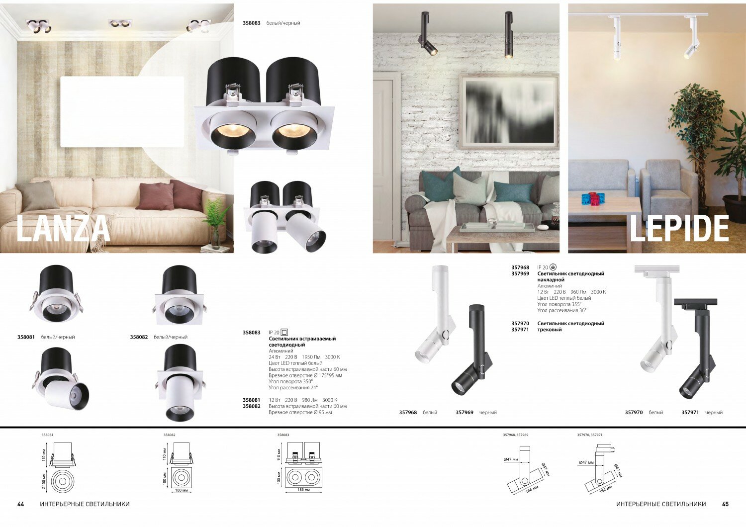 Встраиваемый белый/черный 358083 светильник IP20 LED 3000К 24W 220V LANZA