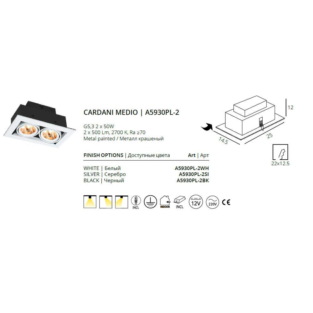 Встраиваемый светильник Arte Lamp Technika A5930PL-2BK интересное: