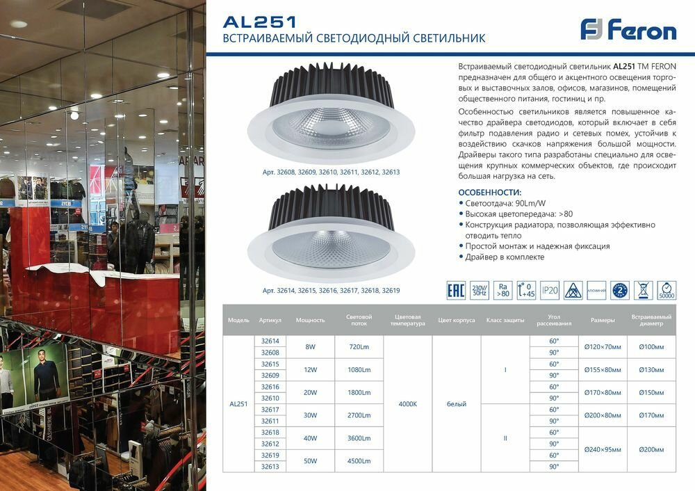 Светодиодный светильник встраиваемый Feron AL251 32617 интересное:
