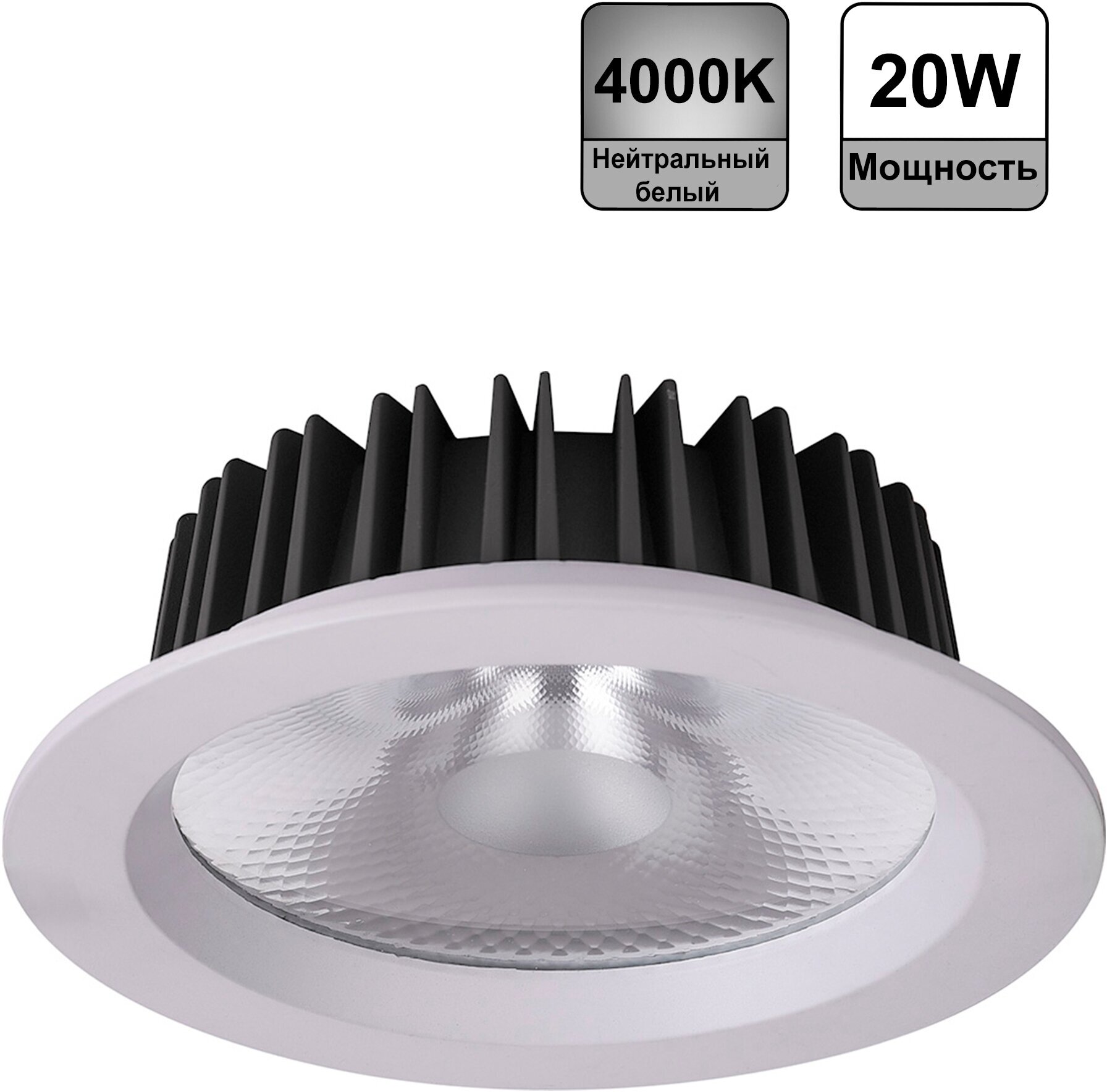 Светильник встраиваемый светодиодный 20W, 1800Lm, 4000K, 90 градусов, белый, AL251 с драйвером в комплекте