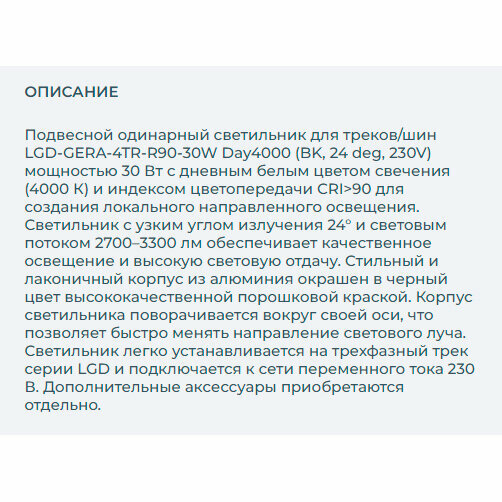 СохранитьСветильник LGD-GERA-4TR-R90-30W Day4000 (BK, 24 deg, 230V) (Arlight, IP20 Металл, 5 лет) интересное: