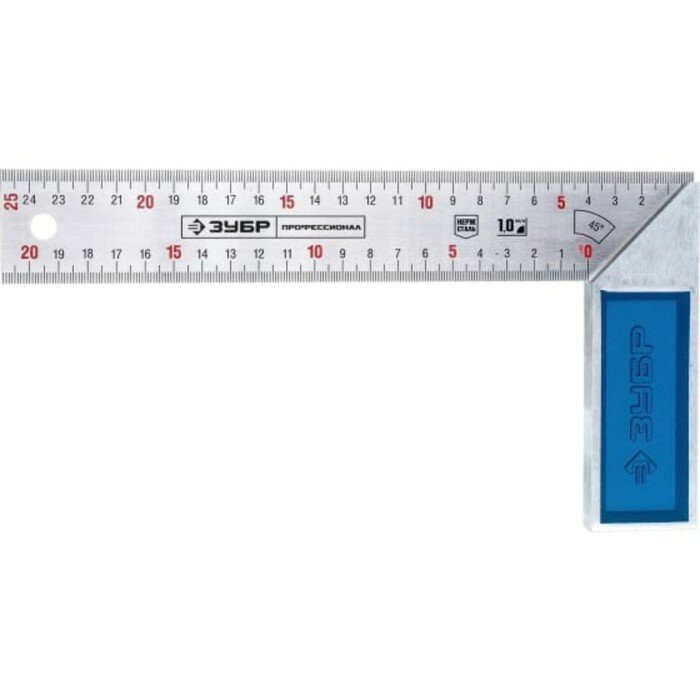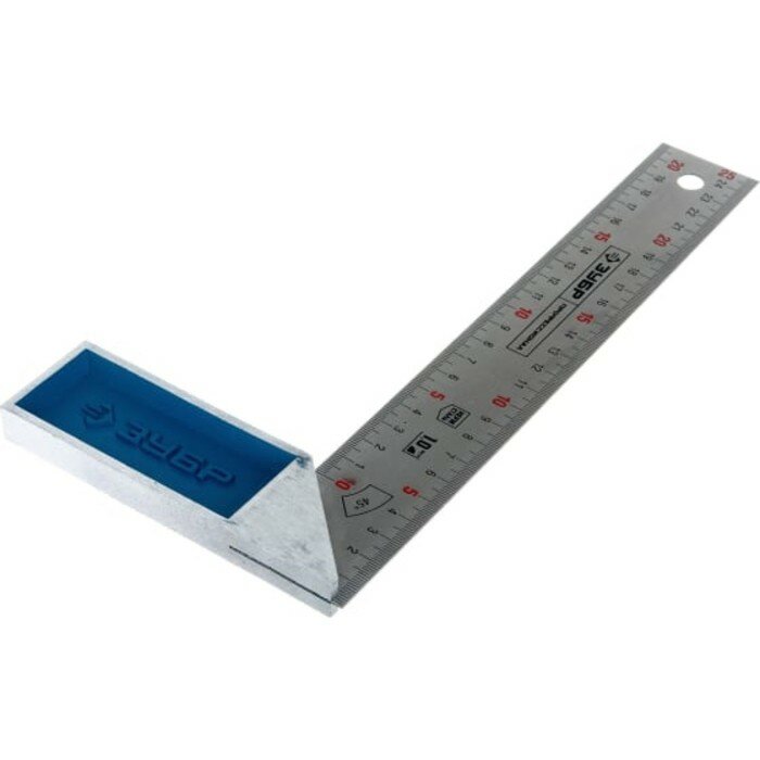 Уровни, рулетки, мерные ленты, линейки, угольники ЗУБР "эксперт" 34393-25 Угольник {столярный, гравированная шкала, алюминиевая рукоятка, нержавеющее полотно 37мм, 250мм }