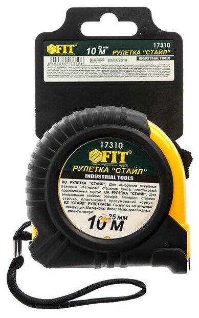Купить Рулетка Профи, прорезиненный корпус "Стайл" 10 м x 25 мм FIT 17310