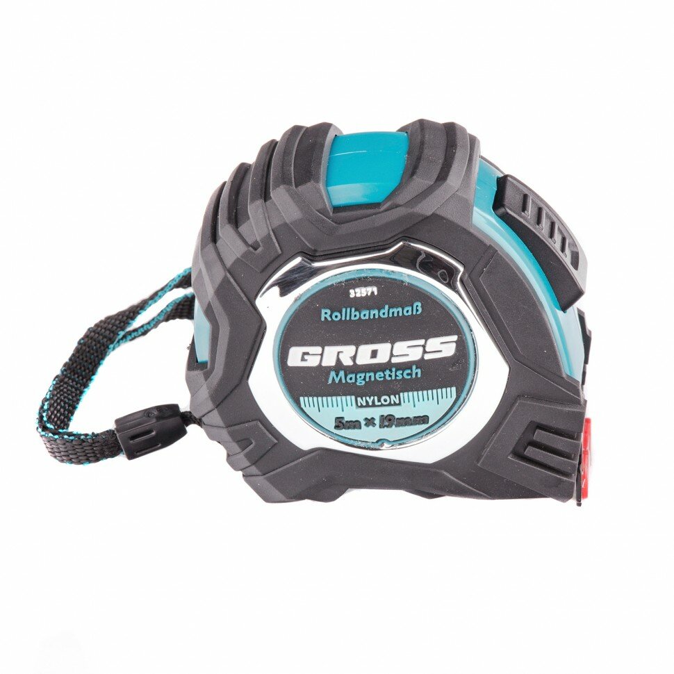 Рулетка Gross Magnetisch 32571, обрезиненный корпус, автостоп, нейлон, 5 м х 19 мм