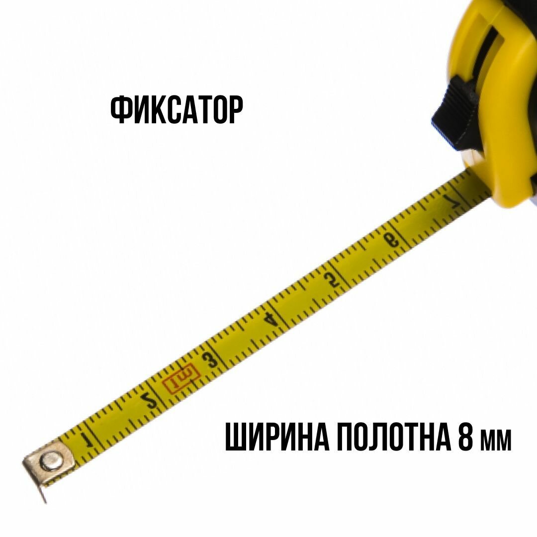 Рулетка строительная 8м х 25мм обрезиненный корпус Политех Инструмент