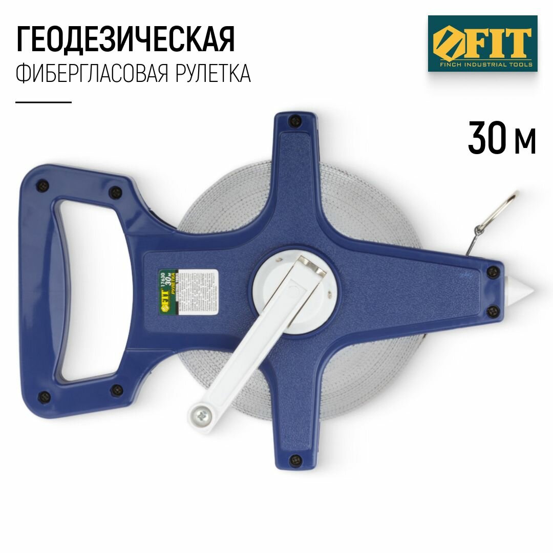 Рулетка землемерная, синий открытый корпус, фибергласовая лента 30 м FIT 17630