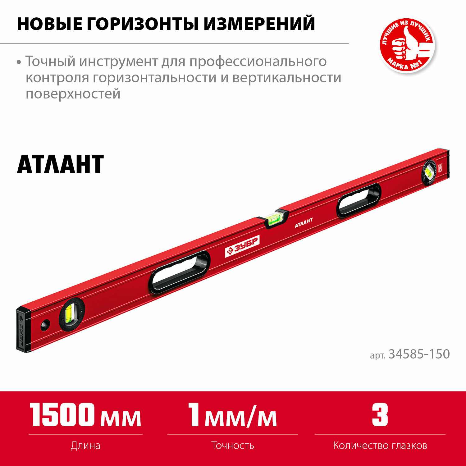34585-150_z01 Зубр Атлант 1500 мм, уровень с мощным профилем .