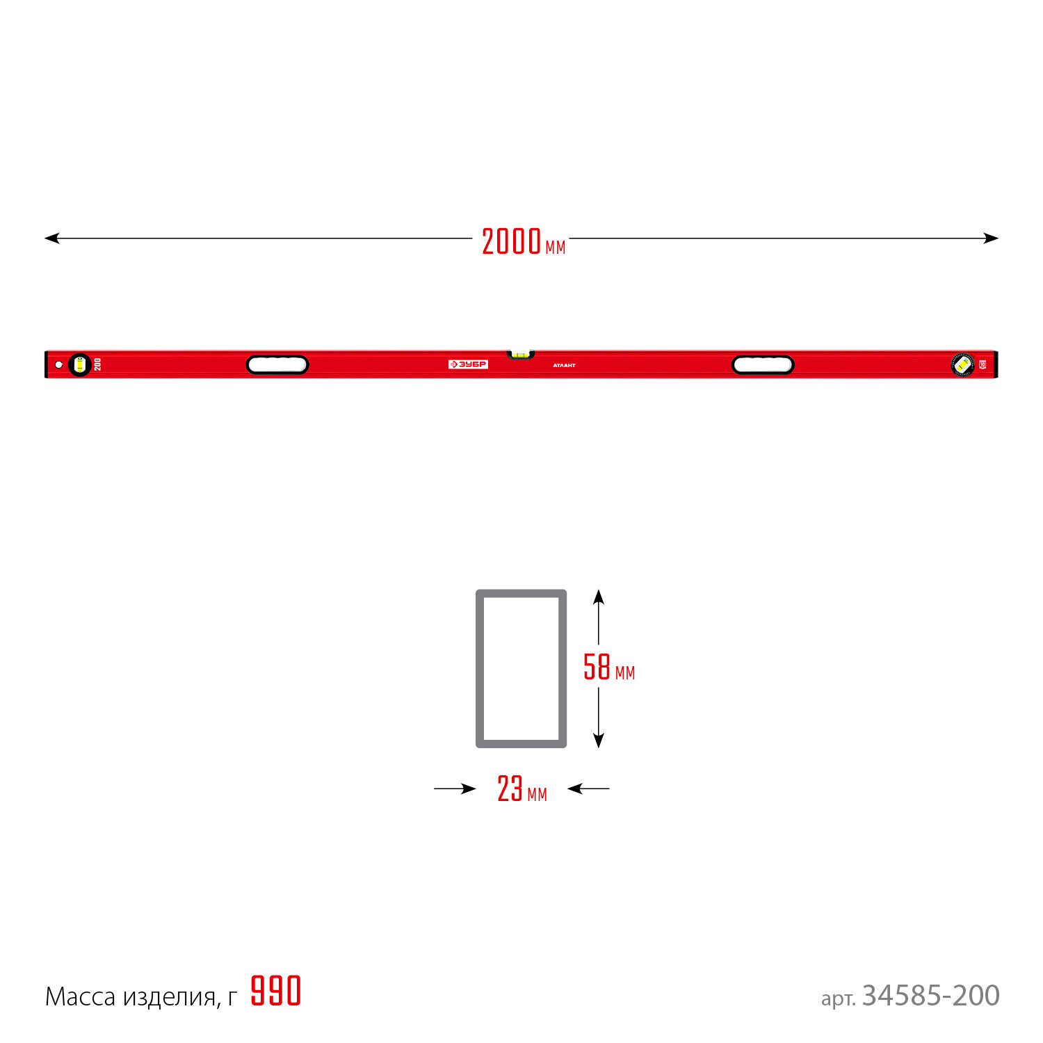 Уровень с мощным профилем Зубр Атлант 2000 мм 34585-200_z01 .