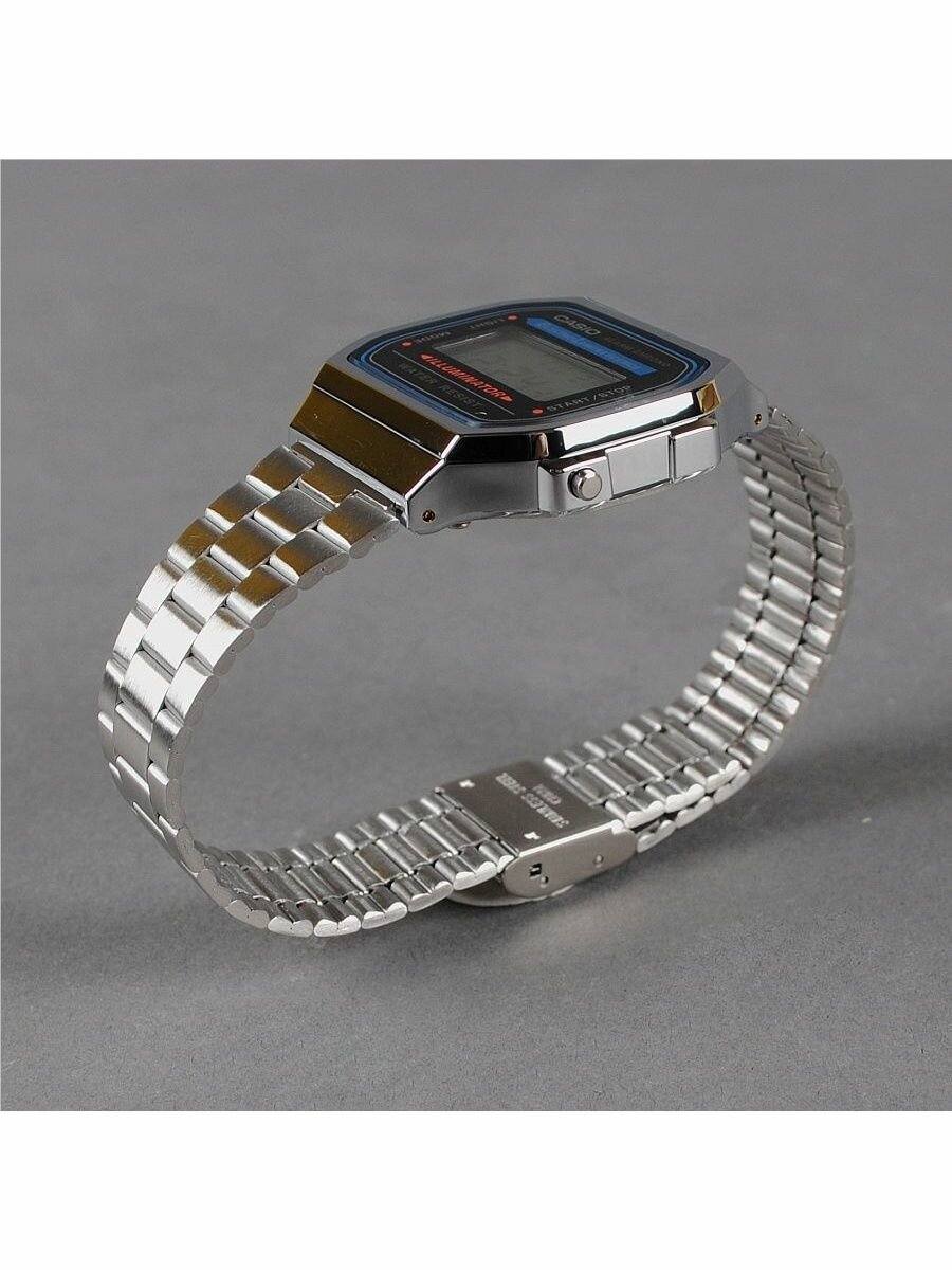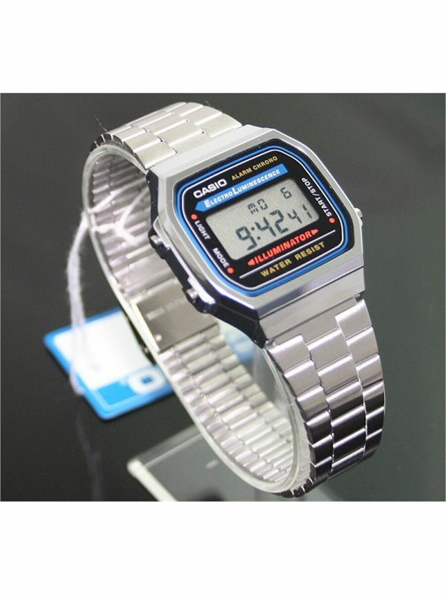 A168WEM-2E Casio наручные часы кварцевые WR30 (3 атм) мужские, женские серебряный, голубой секундомер будильник отображение числа, отображение дня недели, отображение месяца подсветка дисплея акриловое стекло