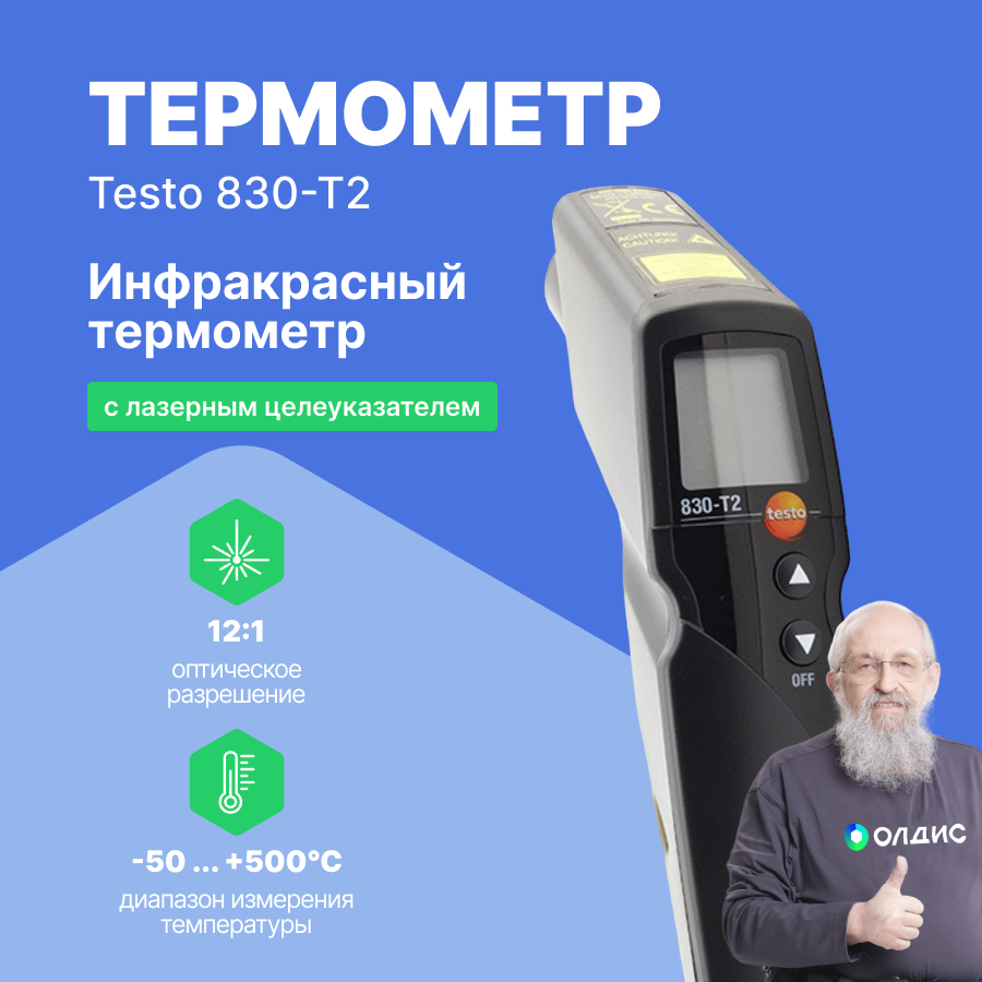 Инфракрасный термометр testo 830-T2 с 2-х точечным лазерным целеуказателем (оптика 12:1) с поверкой интересное:
