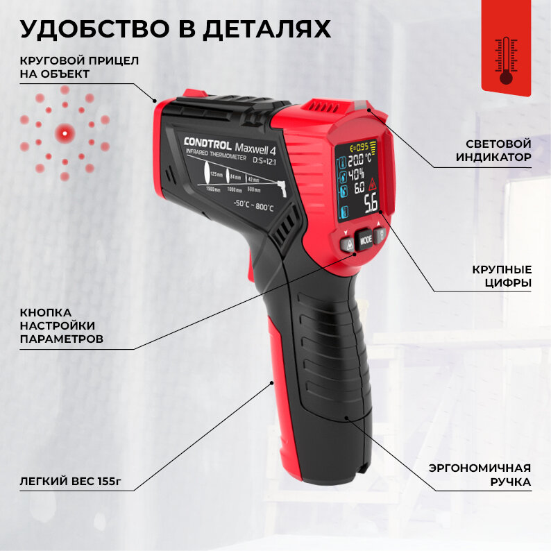 Пирометр (бесконтактный термометр) Condtrol Maxwell 4 интересное: