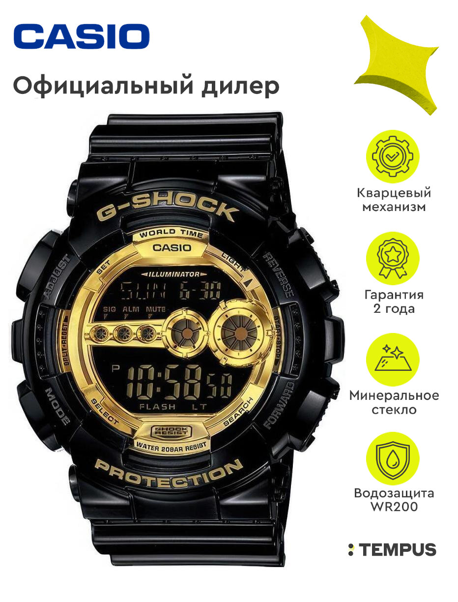 Наручные часы CASIO G-Shock GD-100GB-1E мужские, кварцевые, будильник, хронограф, секундомер, таймер обратного отсчета, водонепроницаемые, противоударные, подсветка дисплея, черный