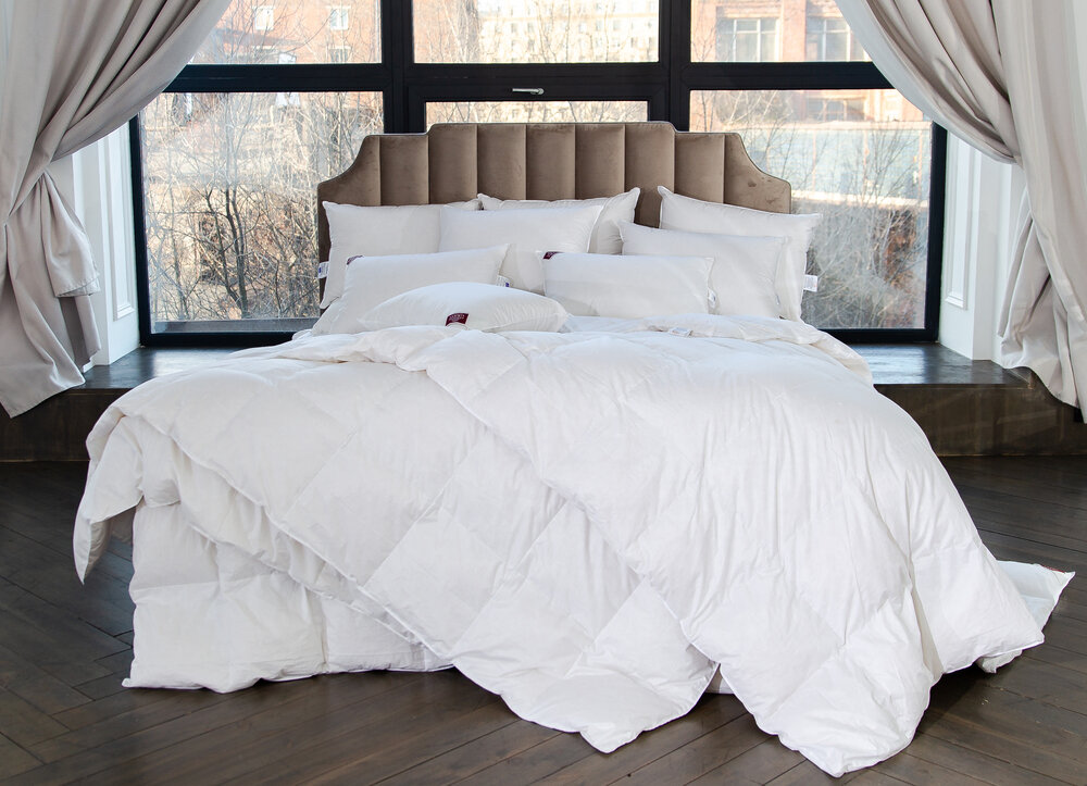 Одеяло Отельное лебяжий пух Кассетного типа 170х205 см, двуспальное 300гр/м2 / Horeca одеяло для отелей и гостиниц
