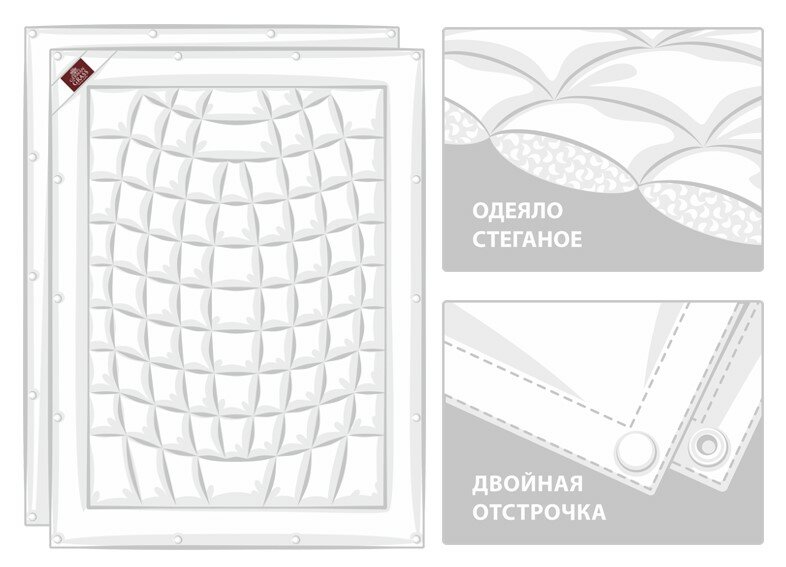 Одеяло Отельное лебяжий пух Кассетного типа 170х205 см, двуспальное 300гр/м2 / Horeca одеяло для отелей и гостиниц