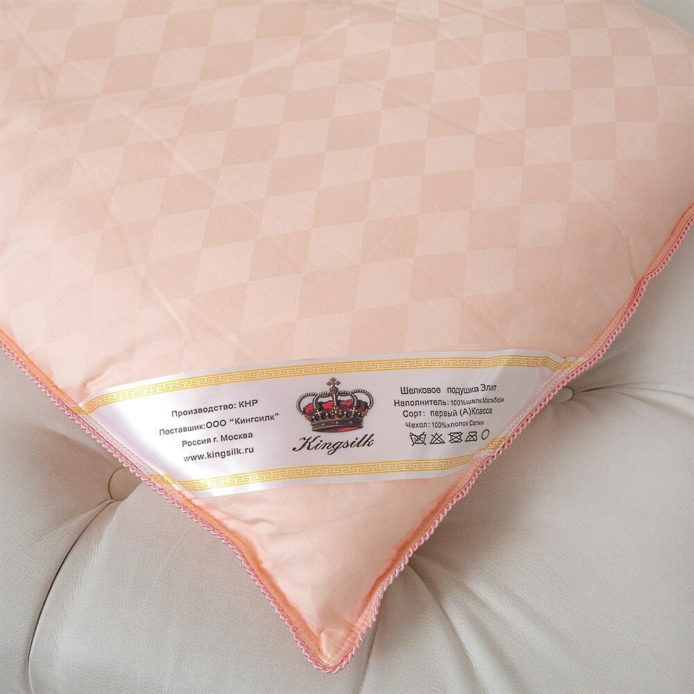 Шелковая подушка Elisabette Элит Престиж Kingsilk персиковая 50x70 низкая интересное: