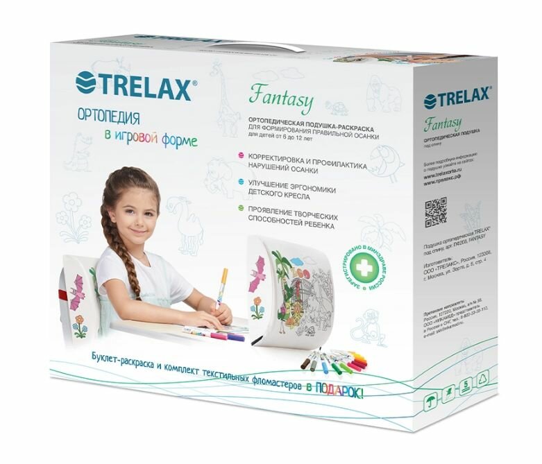 Детская ортопедическая подушка-раскраска TRELAX FANTASY ПФ208 для спины, 32 х 35 см