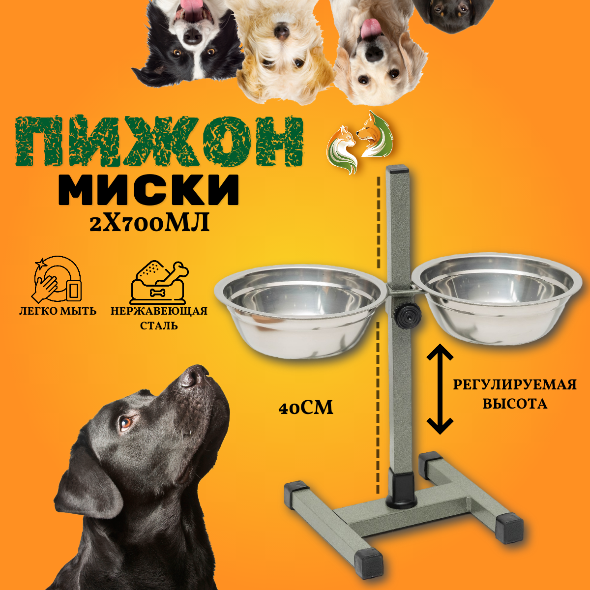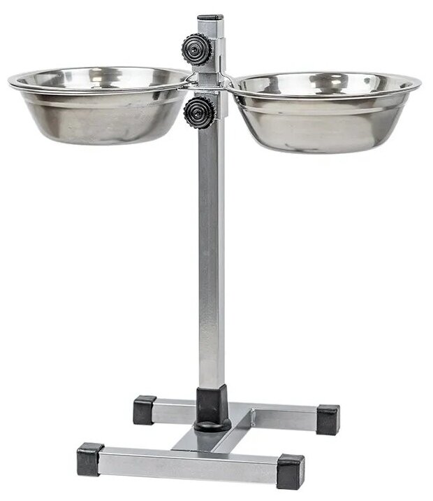 Пижон Подставка с мисками, 2 х 700 мл, высота 40 см, разборная с верхним фиксатором, хром