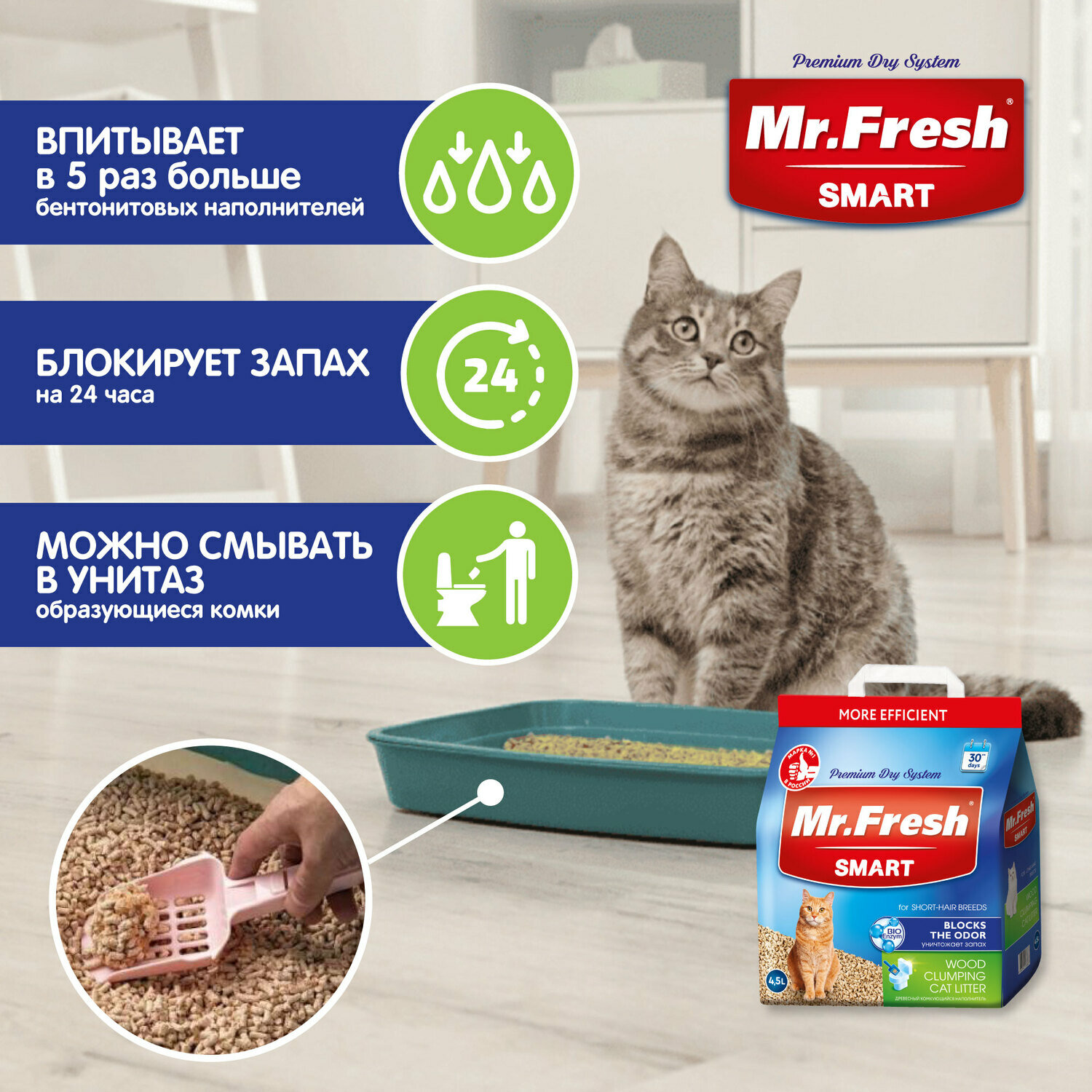 Купить Древесный комкующийся наполнитель Mr.Fresh Smart для короткошерстных кошек 4,5л/2,1кг