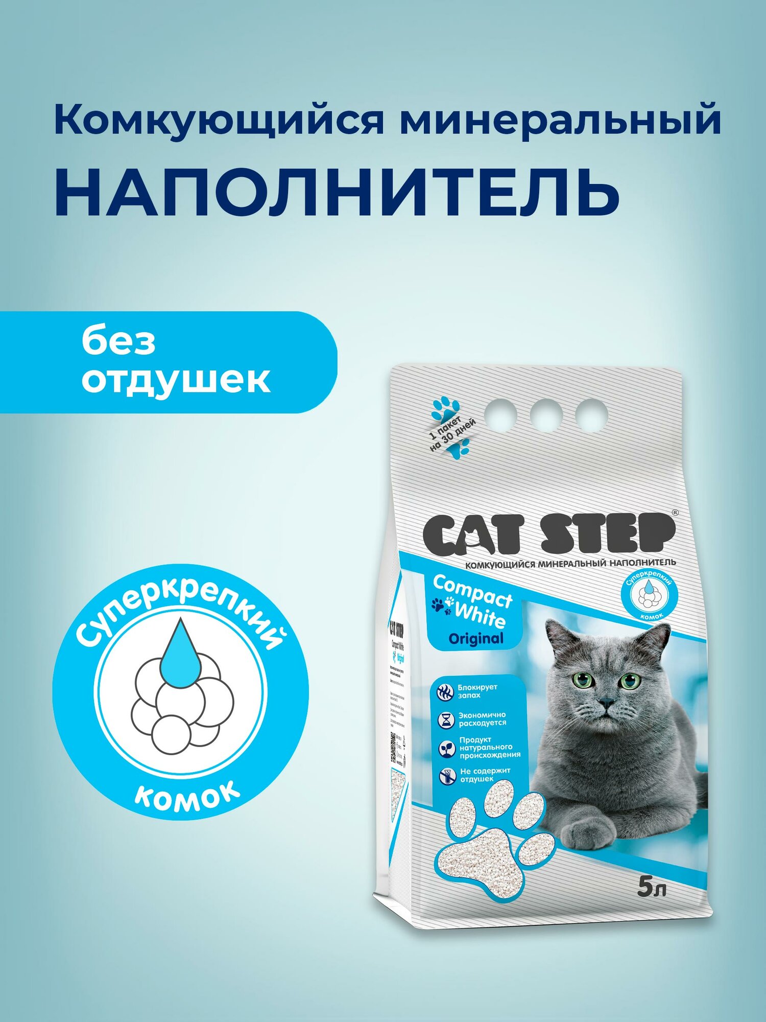 Наполнитель Cat Step комкующийся минеральный Compact White Original, 5л интересное: