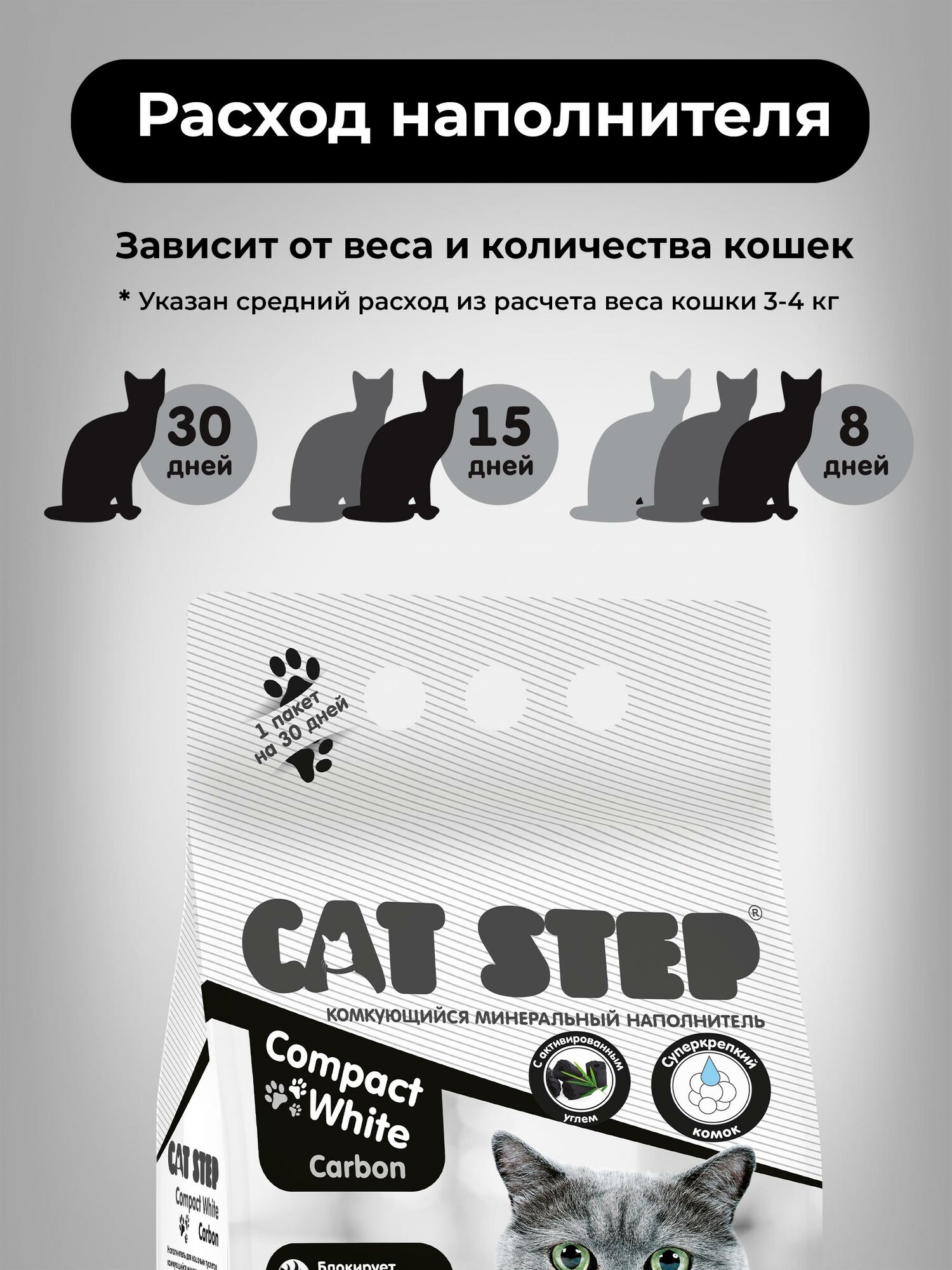 Купить Наполнитель Cat Step комкующийся минеральный Compact White Carbon, 5л