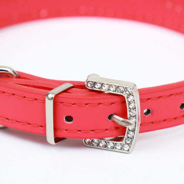 Пижон Ошейник со стразами в 4 ряда и стразы на пряжке, 40 х 1,5 см, красный