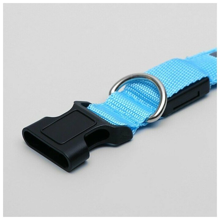 Ошейник с подсветкой Двойная полоса размер S, ОШ 35-43 х 2,5 см, 3 режима свечения голубой, 1039596