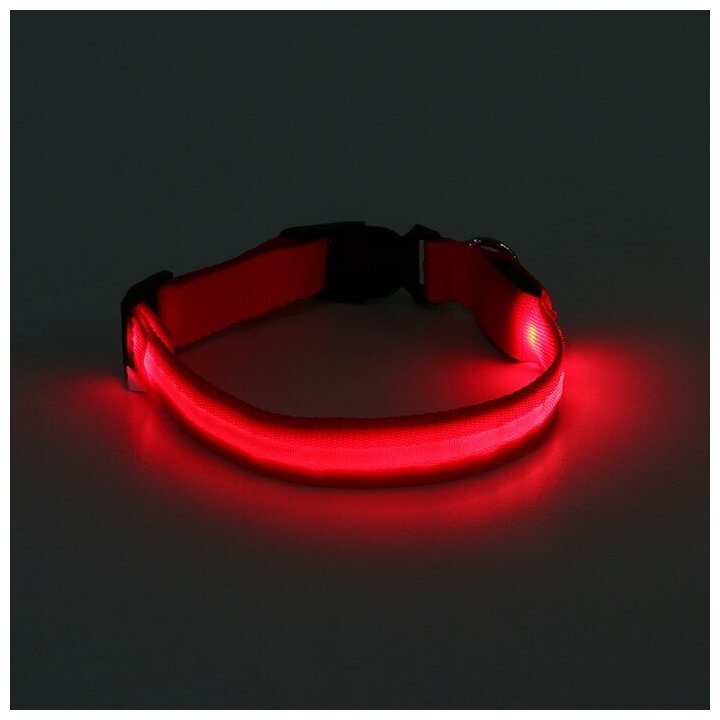 Ошейник с подсветкой, M, 40-45 см, 3 режима свечения, красный