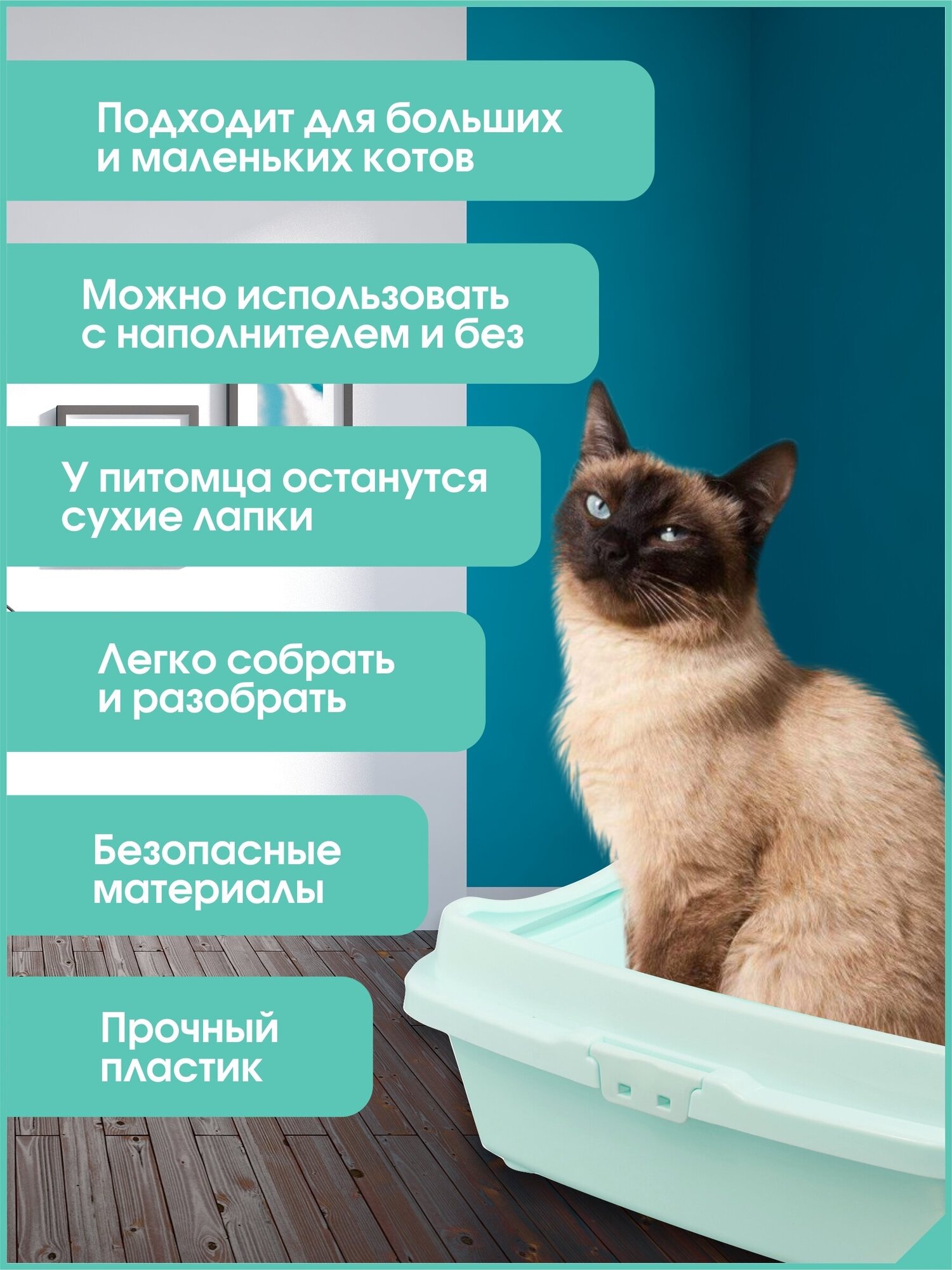 Купить Лоток Туалет для кошек с бортом, ментоловый, 32,5 х 43 х 15,5 см