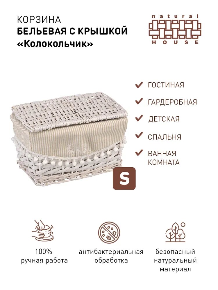 Корзина Natural House бельевая прямоугольная "Колокольчик" 30х20х18 см, белый EW-30 S .