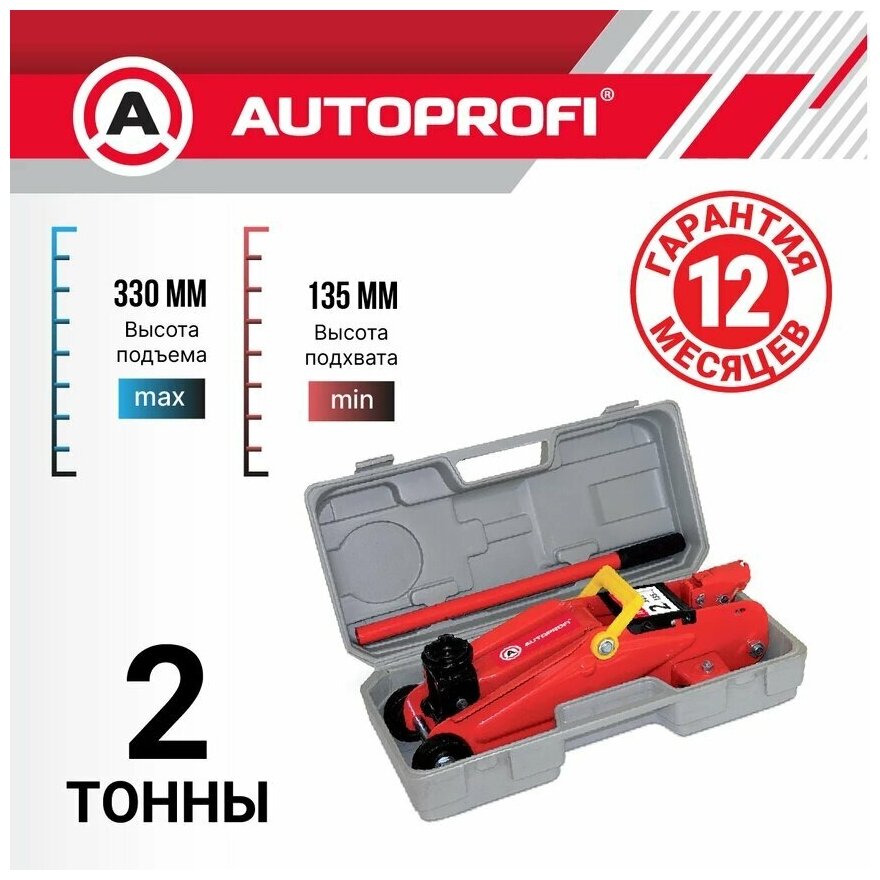 AUTOPROFI DP20K DP-20K_домкрат! подкатной гидравлический, 2 тонны, высота подъёма 135-330мм, в кейсе\