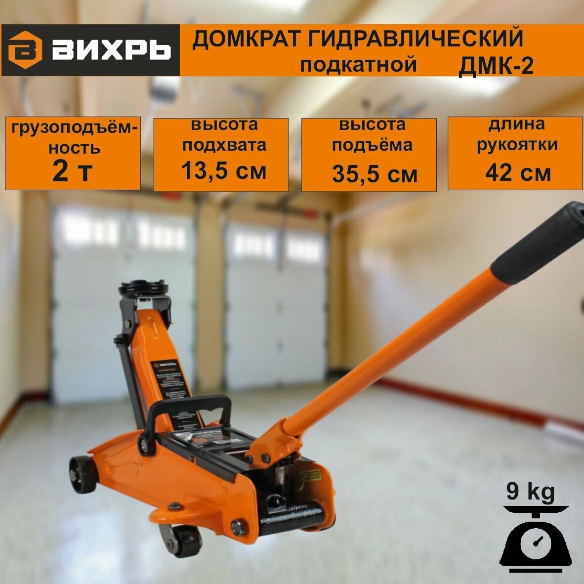 Домкрат гидравлический Вихрь ДМК-2 подкатной, 2т [73/5/4/2]