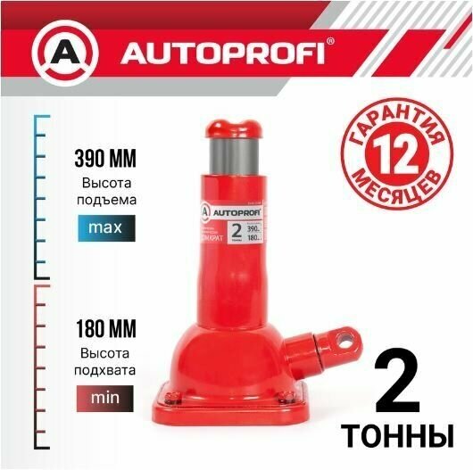 Домкрат винтовой бутылочный Autoprofi, 2000кг, подъем 180-390мм
