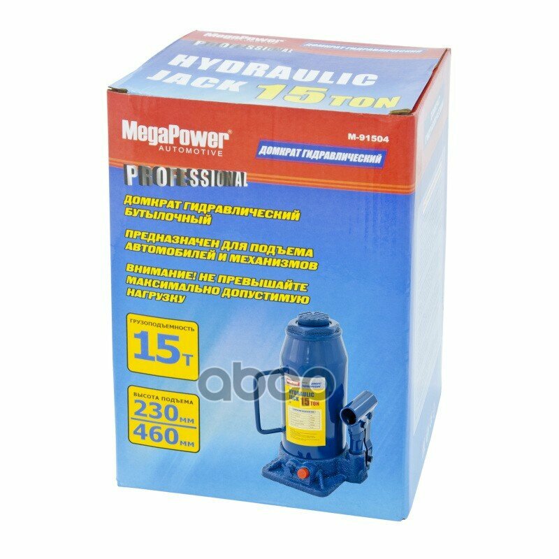 Домкрат Бутылочный 15Т 230-460Мм С Клапаном Megapower MEGAPOWER Automotive арт. M91504