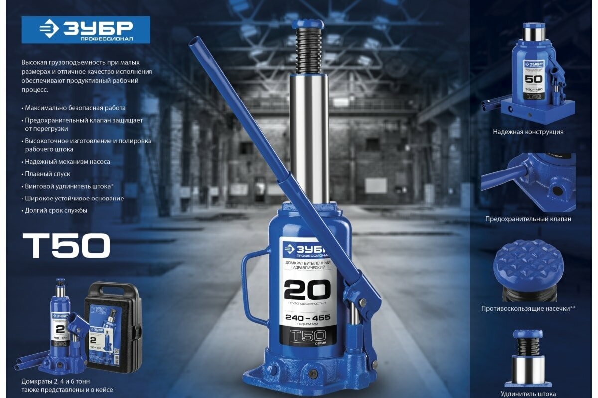 ЗУБР домкрат бутылочный гидравлический T50 43060-30_z01 Профессионал