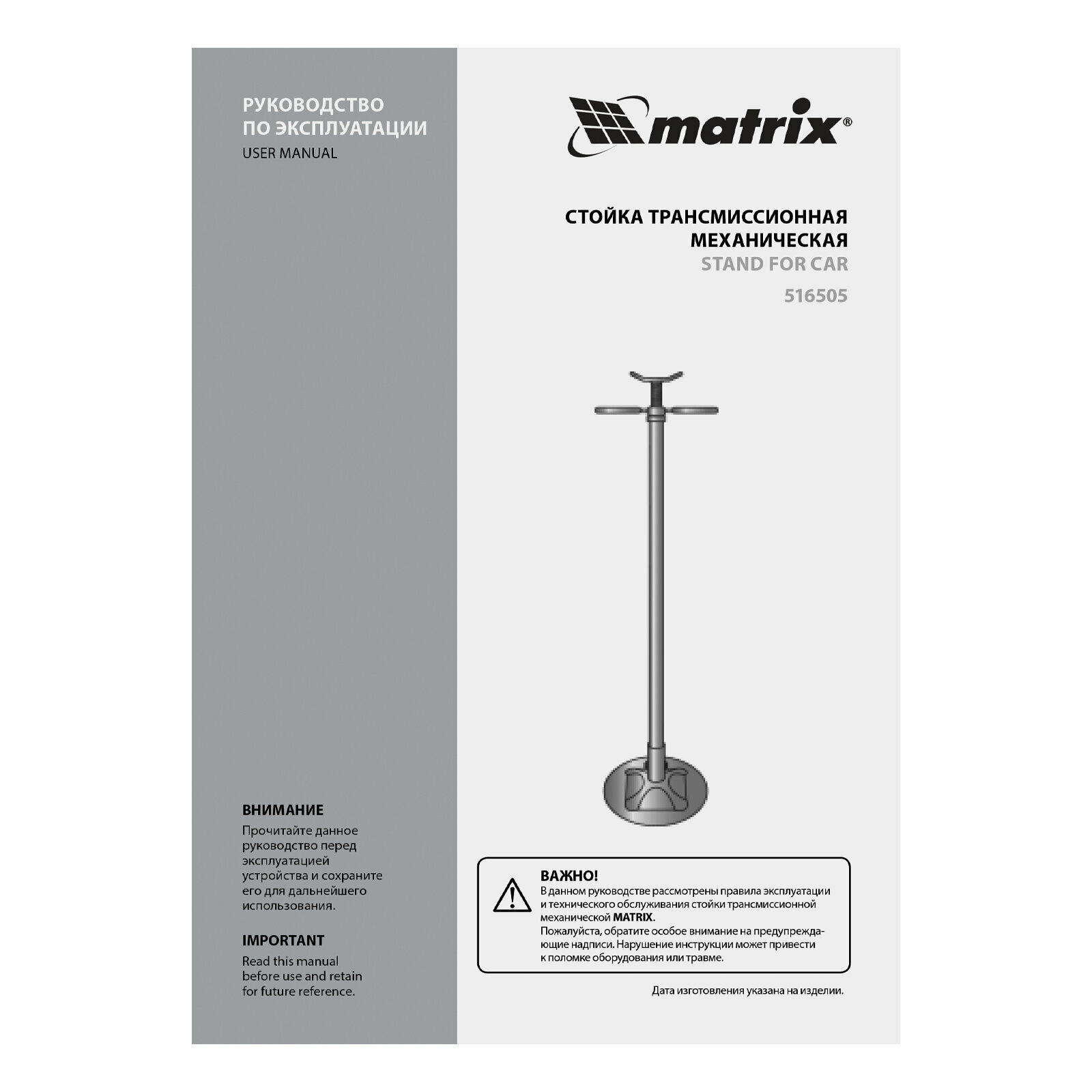 MATRIX 516505 516505_стойка трансмиссионная! механическая, 0.6т, h подъема 1360-2030мм, high position\