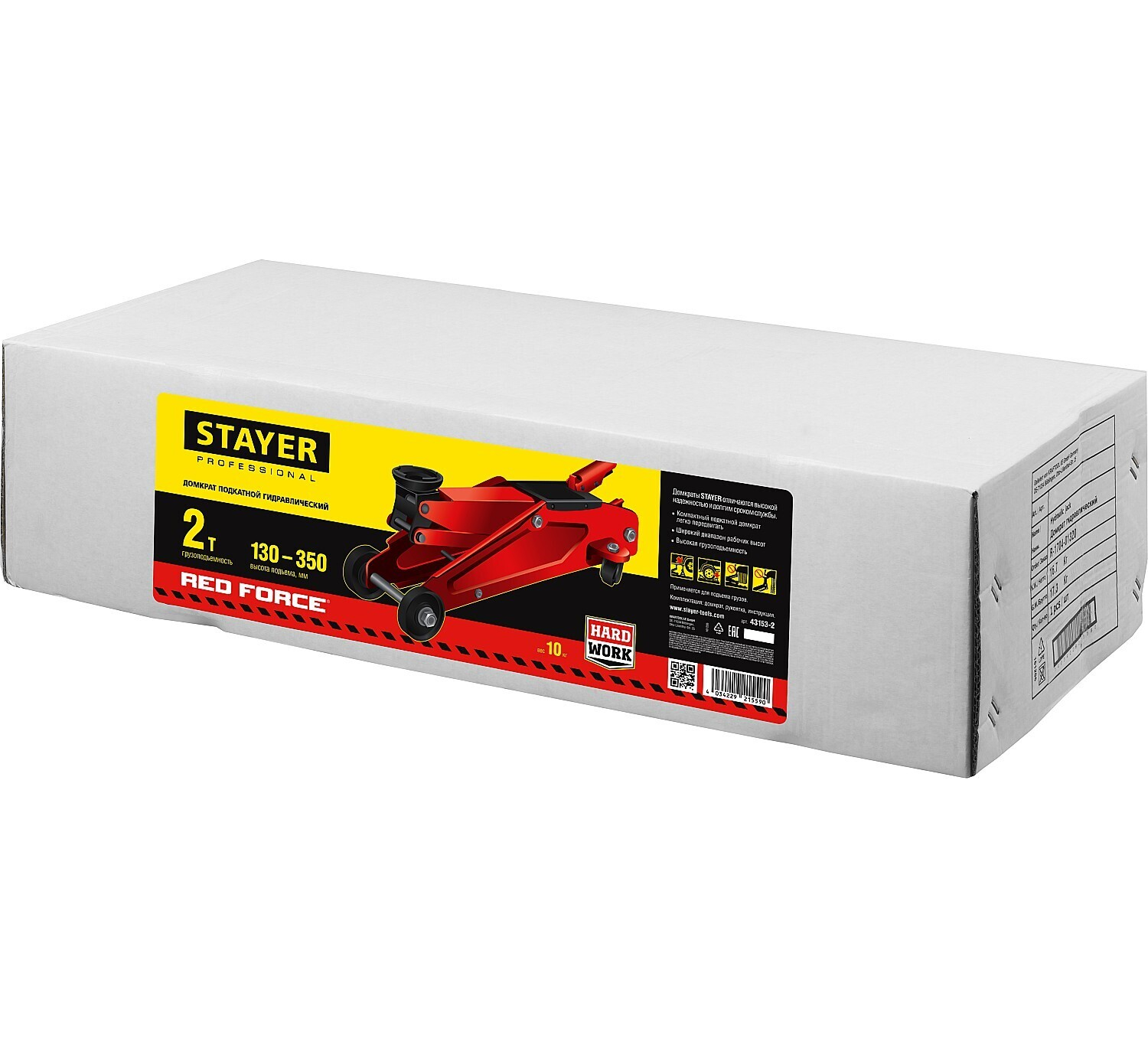 Stayer "RED FORCE" Домкрат гидравлический подкатной, 2т, 130-350мм, 43153-2