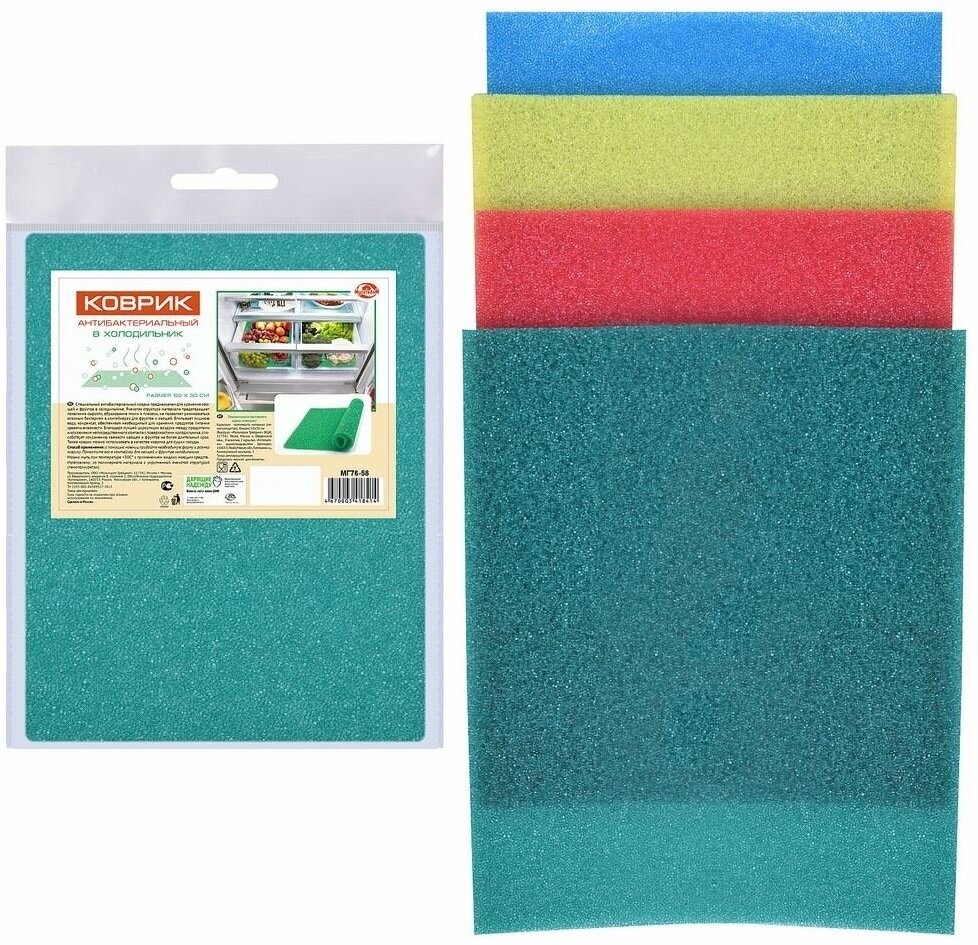 Коврик антибактериальный в холодильник Мультидом 50x33см интересное:
